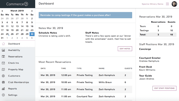 The cloud connected reservation system is tightly integrated with the rest of the Commerce7 platform and is available today on Apple, Android, and Windows.