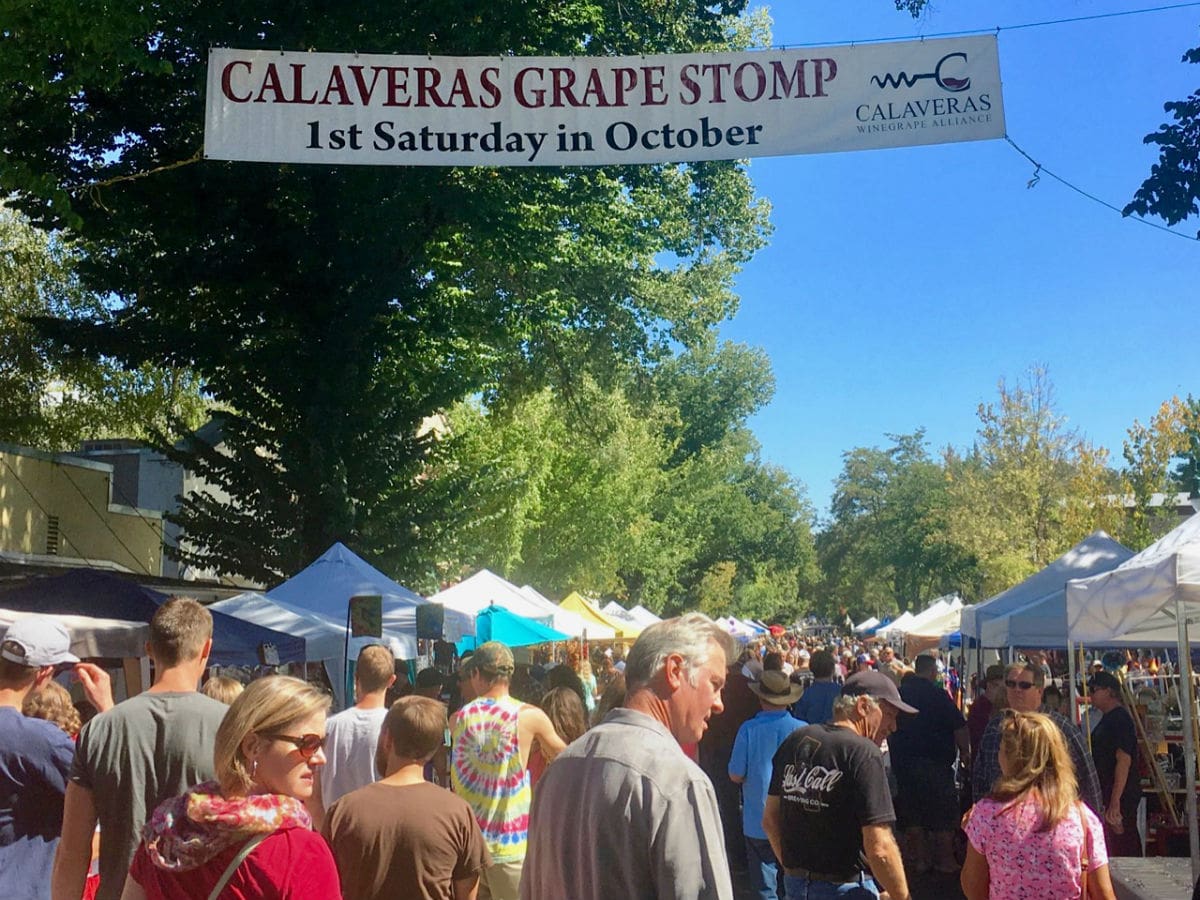 Murphys, CA – On Saturday, October 5th over 5000 people will attend the 26th Annual Calaveras Grape Stomp at Murphys Community Park where 120 teams from near and far will compete in the grape stomp competition. This annual event produced by the Calaveras Winegrape Alliance and local volunteers, has grown to be California’s Oldest and Largest Grape Stomp Competition. The event takes place from 9:00-5:00 and includes Live Entertainment, Costume Contest, Kids Activities, a Gold Rush Street Faire with over 100 vendors as well as Silent and Live Auctions supporting community organizations and providing high school scholarships. Visitors to Calaveras Wine Country can find information about Harvest and Grape Stomp Weekend Celebrations at the Calaveras Winegrape Alliance website here: https://www.calaveraswines.org/grapestomp-wine-weekend