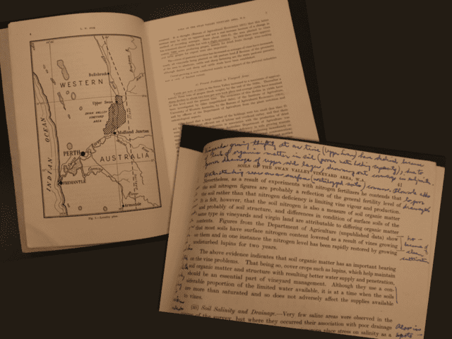 Olmo’s travels to Western Australia in 1955 to study how climate changes were impacting viticulture practices in the Swan Valley transformed Australian winemaking for generations. This research, which will now be made available through the Larkmead-UC Davis Library partnership, could yield clues to how California winemakers and grape growers might adjust their farming practices to better adapt to climate change.