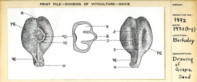 Drawing of Grape Seed (Harold Paul Olmo Papers, Archives and Special Collections)