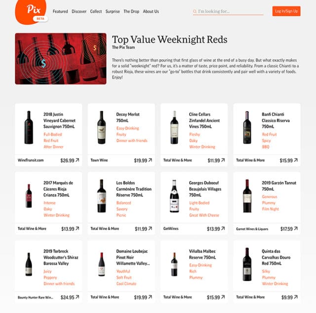Little by little, Pix is making the vast wine world more sippable — learning what consumers like based on behavior and sparking discovery through inspiring articles, user-friendly search. And if you’re a producer, be sure to join the adventure.