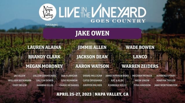 Bobbii Jacobs, Co-founder of Live In The Vineyard Goes Country and President of FF Entertainment, comments, “We are honored to have the opportunity to bring together such an incredible lineup of talented artists for Live In The Vineyard Goes Country. With the addition of Jay Allen, Jimmie Allen, James Barker Band, and Drake Milligan, our lineup represents an exciting mix of established and up-and-coming artists passionate about their craft. We can’t wait to showcase their raw talent and electrifying performances, and we look forward to seeing their impact on the music industry.”