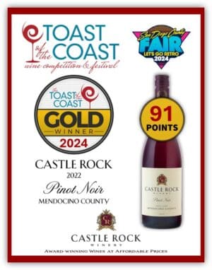 April 2nd – Castle Rock Winery is proud to announce they have won two Gold Medals, with 91-point scores – for their 2022 Mendocino County Pinot Noir and 2022 Columbia Valley Cabernet Sauvignon at this year’s Toast of the Coast Wine Comp. Castle Rock Winery Owner Greg Popovich stated “the year is still young, and this comes on top of two 91-point scores and six 90-point scores last month from James Suckling, a Platinum and two Gold Medals at this year’s Monterey International Wine Comp – and a Double Gold – 96 points for our Columbia Valley Chardonnay at this year’s Los Angeles Invitational Wine & Spirits Challange. This is all proving that our winemaker, Meghan Rech, not only makes wines that represent incredible values, she makes wines that quality wise are consistently punching above their weight class.”