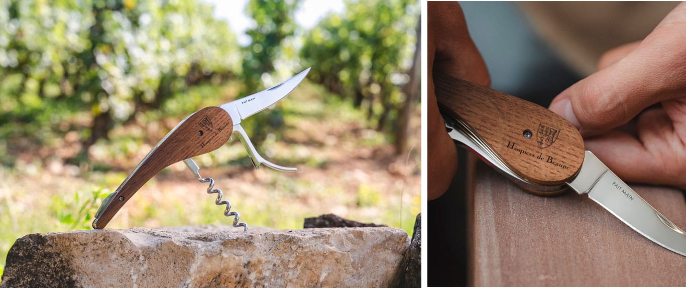 Each year, ahead to the Hospices de Beaune Auction, Albert Bichot lends its support to the institution by revealing an exceptional product created for the occasion. Following the launching in 2023 of a wooden Soundivine connected speaker bearing the house and Hospices coats of arms, this year’s partnership with Atelier du Vin has given rise to an exceptional sommelier knife.