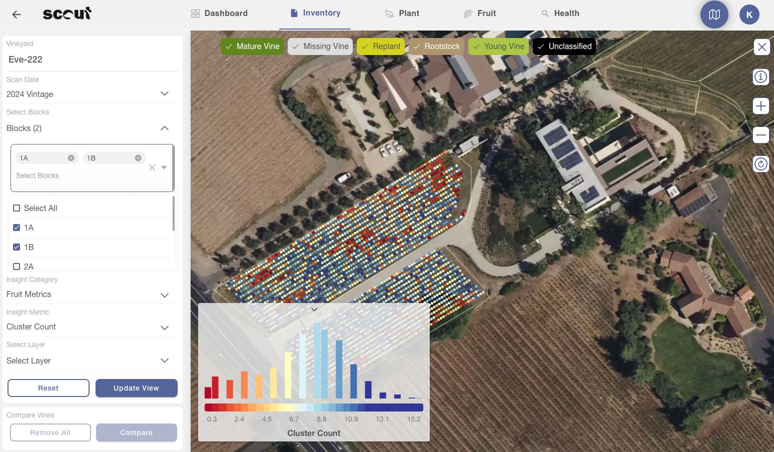 Additional platform enhancements include expanded support for data collection through integration with Monarch Tractor’s electric fleet, enabling automated data capture during routine vineyard tasks. Scout’s AI models have been expanded to support a broader range of wine grape varieties, with continuous improvements in data organization, canopy classification, vigor analysis, and health monitoring.
