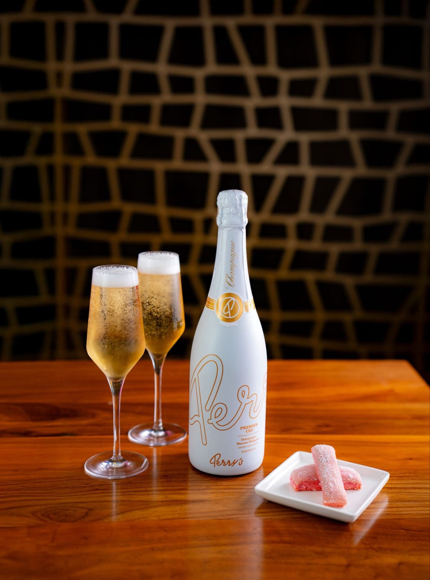 Served alongside each glass is a complementary Perry’s Champagne Biscuit — a delicate, crisp, pink indulgence designed to be gently dipped, adding a whisper of sweetness and a shimmering finish to every sip. This is Perry’s homemade version of “Biscuits of Reims” that date back to the 1600s and are widely known as the perfect accompaniment to Champagne.