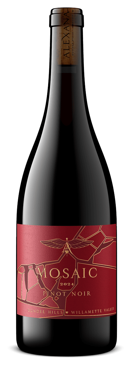 July 31, 2025 (Dundee Hills, OR) — In celebration of its 20th anniversary, Alexana Estate is honored to debut its 2023 “Mosaic” Pinot Noir. An estate-grown blend from Alexana’s two organic, dry-farmed vineyard sites, Mosaic showcases the potential of the Western Slope of Oregon’s Dundee Hills AVA in a shimmering, layered Pinot Noir. The grapes in each of the 100+ small-lot fermentations that make up Mosaic are hand-harvested, triple-hand sorted, and fermented with native yeasts, preserving the individuality of the 50 distinct vineyard blocks at Alexana.