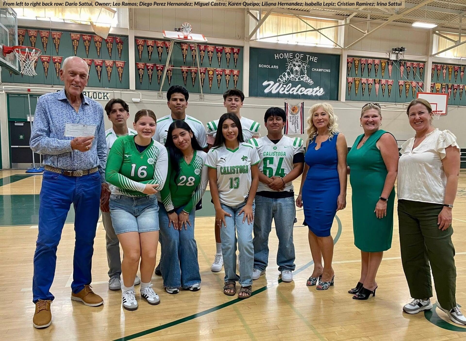 September 18, 2025 (Calistoga, CA) — Dario Sattui has pledged $1.5 million to renovate the gym at Calistoga High School. He presented a check to Dr. Audra Pittman, Superintendent, Stephanie Rothberg-Allan, Board President, Monica Baldenegro, Principal, and students at a check presentation ceremony at the school on August 20, 2025. “I am honored to support the community which has been so supportive of our winery,” Sattui said. The updated space will be named The Dario Sattui Gym. The contribution be leveraged with bond funds to bring the outdated facility into the modern era by adding new HVAC systems, new flooring, updated locker rooms, updated entryway, and an exterior facade that will tie the building in with the rest of the campus.