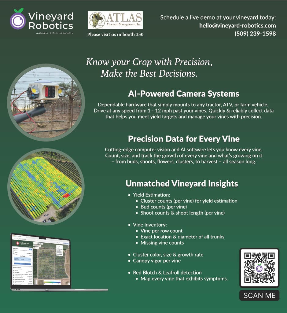 Know your crop with precision, make the best decisions. With AI powered systems that can mount to any tractor, ATV, or farm vehicle that can be driven past your vines to collect data quickly and with precision. The cutting edge computer vision and AI Software gives you all the details you need. You get insights anywhere from the bud counts, to vine inventory, size, color, and length all season long. Collect reliable data that will allow you to meet yield targets and manage your vines with precision.