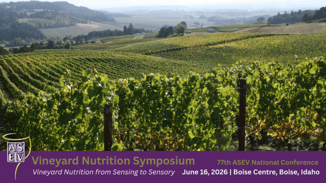 November 17, 2025 (Davis, CA) — Bringing together vineyard researchers, enologists, and growers from across the nation, the American Society for Enology and Viticulture (ASEV), in association with the National Grape Research Alliance (NGRA), will host the Vineyard Nutrition Symposium in Boise, Idaho, as part of the 2026 ASEV National Conference.