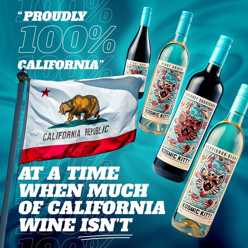 November 25, 2025 (Rolling Hills, CA) — Kosmic Kitty Wines today reaffirmed a promise consumers can no longer take for granted: every bottle is 100% California-grown and 100% California-made. No foreign bulk wine. No loopholes. No fine print.