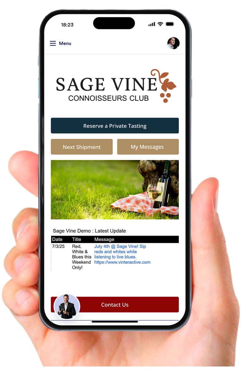 myWineClubApp™ puts our brand on your best customers’ phones with 1-click access to club benefits and personalized messages sent in-app and through push notifications.