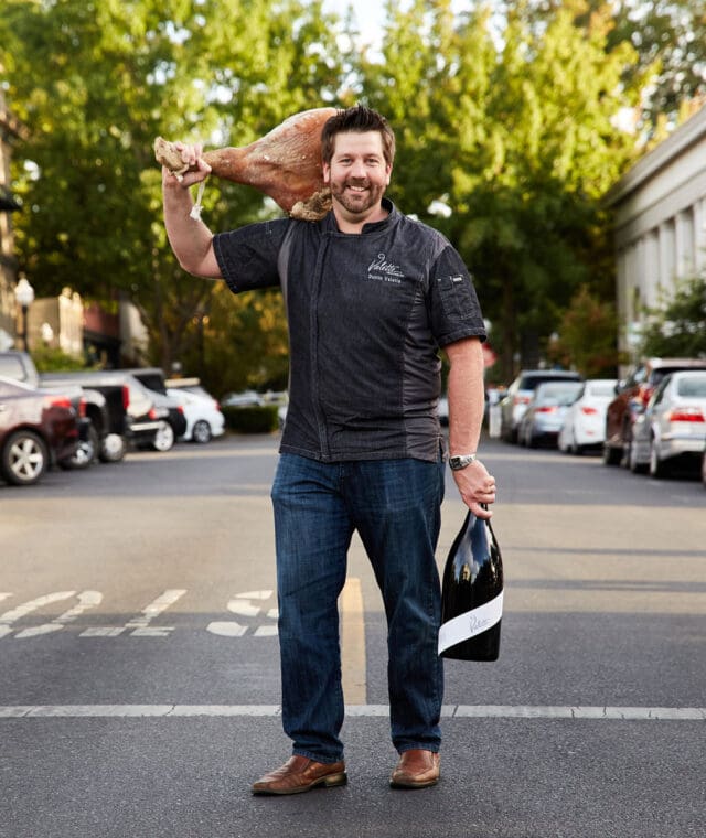 The Valette family story in Healdsburg spans four generations. Dustin’s great-grandfather, Honoré Valette, emigrated from France in the early 1900s and built bakeries in downtown Healdsburg. Today, both Valette restaurant and The Matheson operate in buildings that once housed those bakeries. The restaurants have earned Michelin recognition and Wine Spectator Awards of Excellence.