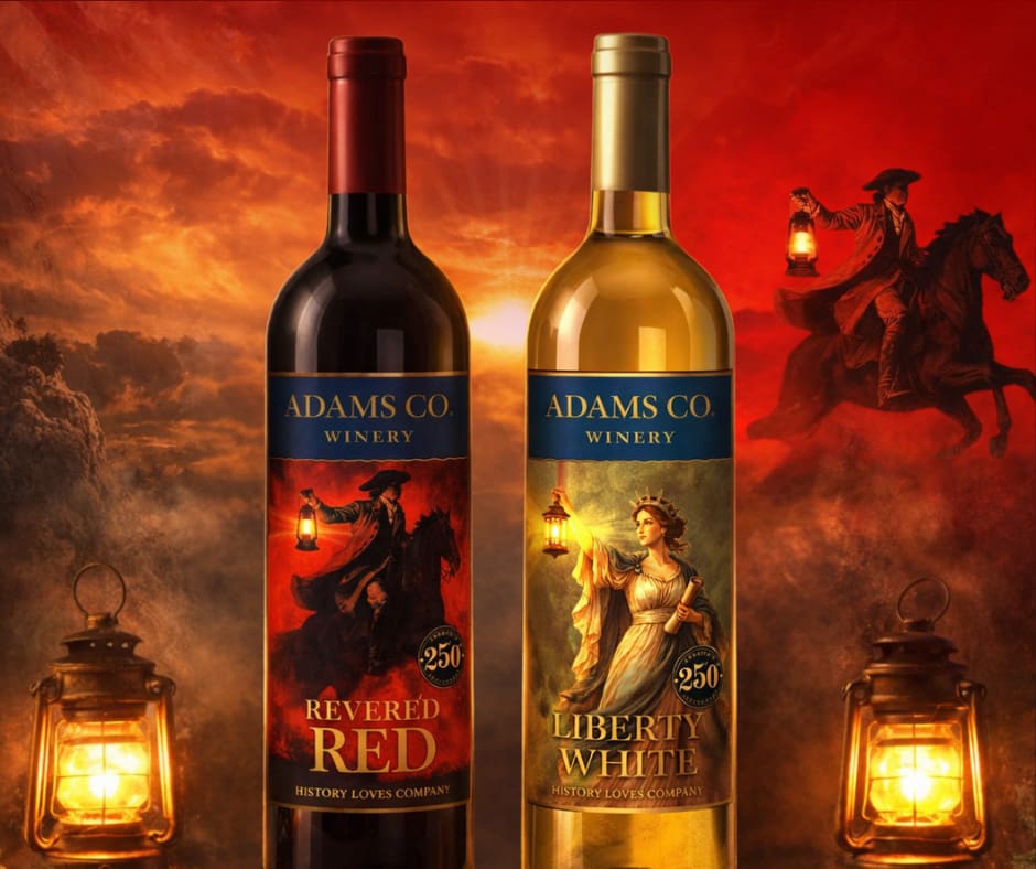 February 26, 2026 (Orrtanna, PA) — On March 7, Adams County Winery will officially unveil two commemorative wines created in celebration of the upcoming 250th anniversary of the United States: Revere’d Red and Liberty White. The releases will be featured throughout 2026 as part of the America 250 and Pennsylvania PA250 celebrations.