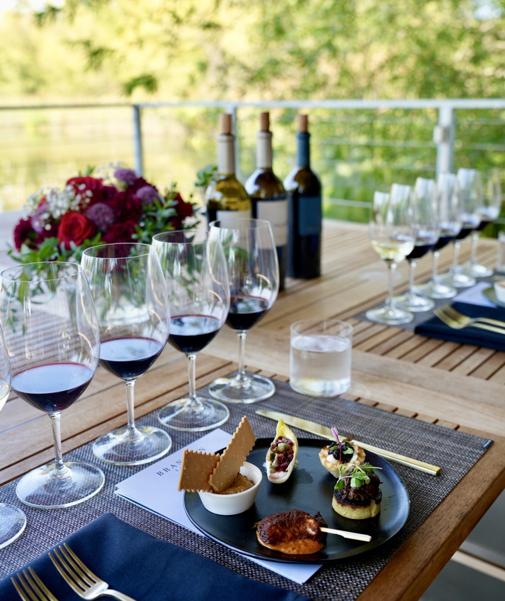 In addition to the flagship wine and food pairing experience, guests may also choose from two wine-focused tasting options, offering different levels of engagement with the Brandlin Estate portfolio. A guided Brandlin Tasting provides an in-depth introduction to the estate’s wines and vineyard character, while an elevated Brandlin Boathouse Tasting Experience—weather permitting—offers a more immersive setting, both with the option to include seasonal bites.