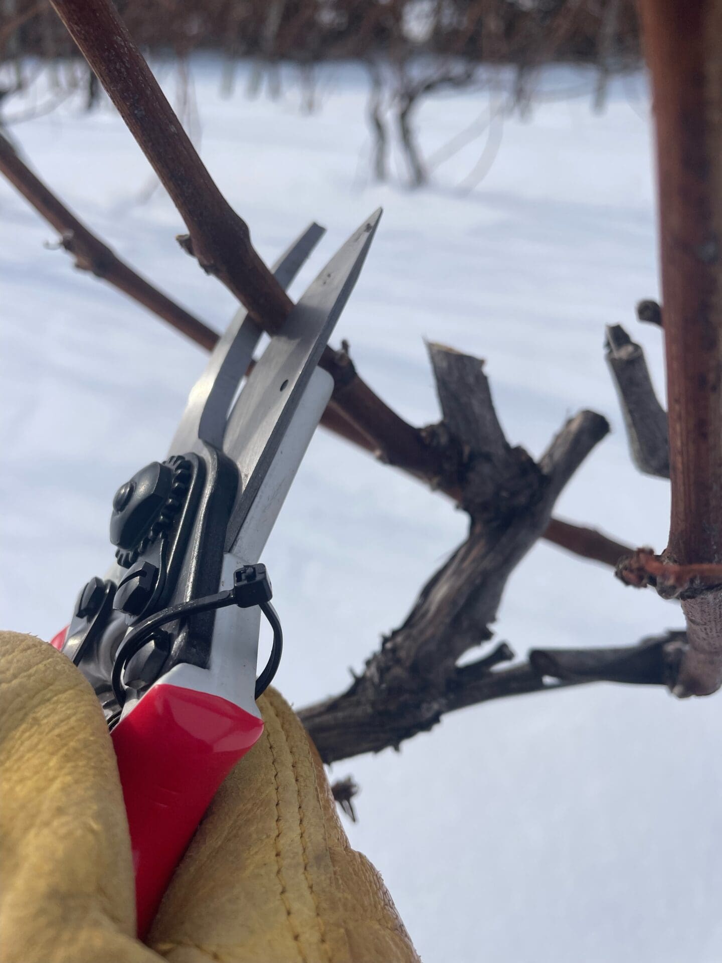 Vineyard Manager Andy Fles and the Shady Lane Cellars team had already been exploring Sap Flow techniques, also called pruning for permanent structures, to find out how it might impact the longevity of the vines at the estate winery. So the timing seemed perfect.