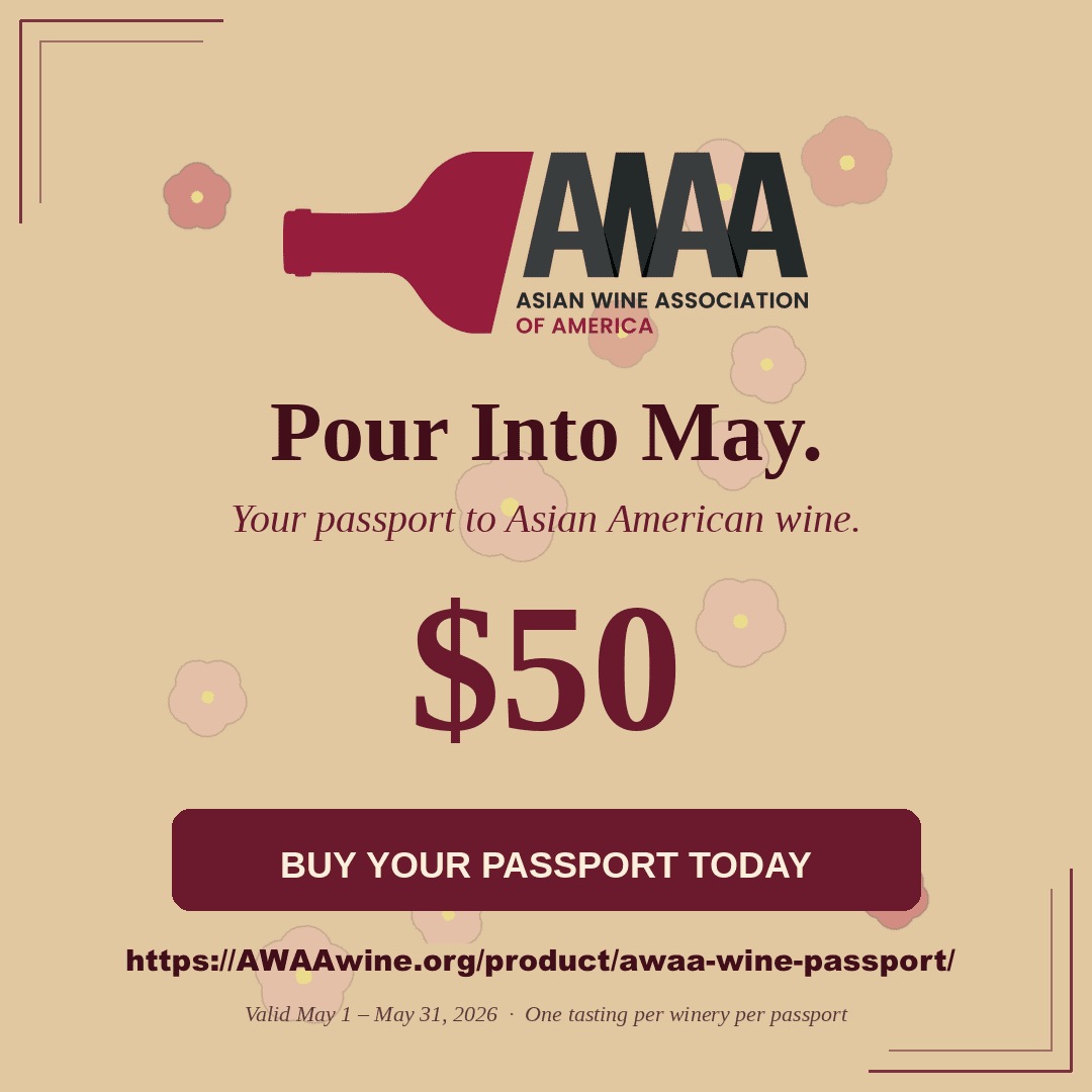 “The AWAA Wine Tasting Passport is an invitation to explore the depth and diversity of Asian American winemaking, while directly supporting a community that is helping shape the future of California wine,” said Susan R. Lin, Master of Wine, President and Co-Founder of AWAA. “By turning AAPI Heritage Month into a shared tasting journey, we are creating visibility for our members, driving meaningful tasting room visits, and expanding access to wines and stories that deserve a bigger stage.”