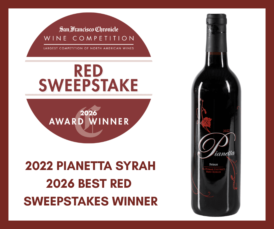 Pianetta Winery’s 2022 Syrah from the El Pomar District of Paso Robles was awarded the Red Wine Sweepstakes at the 2026 San Francisco Chronicle Wine Competition, earning the distinction of highest-scoring red wine in the entire competition.
