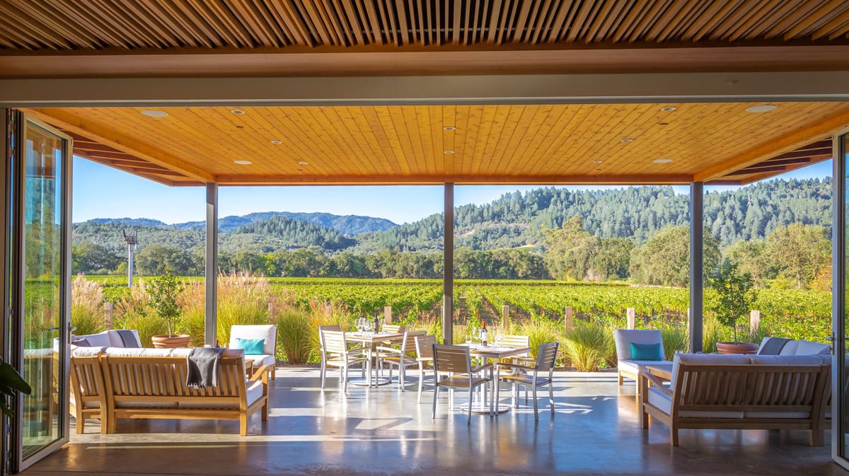 Titus Vineyards’ tasting room offers a stunning view of the winery’s 50-acre vineyard estate, with its floor-to-ceiling glass and outdoor seating welcomes Valley views to the south, west and north of the property. More at https://www.titusvineyards.com/