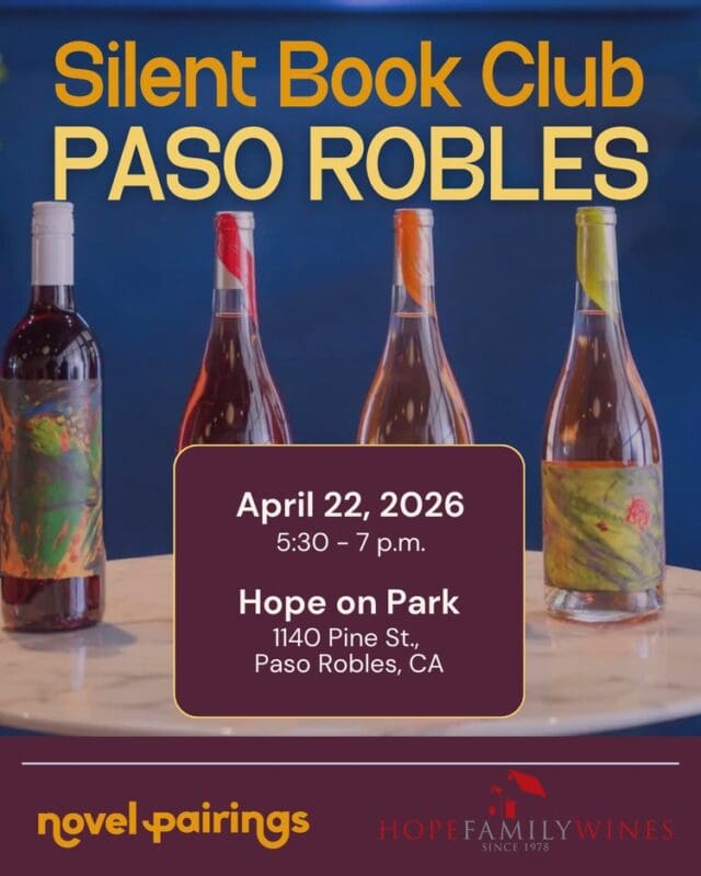 Join Novel Pairings and Hope Family Wines for a restorative, slow-paced Silent Book Club in the heart of downtown Paso Robles. Bring whatever book you’re currently reading — a novel, memoir, fantasy epic, romance, thriller, or that half-finished stack on your nightstand — and settle in for a night of shared quiet and good wine.