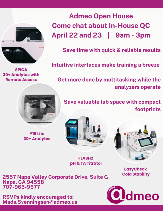 Come chat with us at our Open House April 22–23 to talk about all things in-house QC! 🍇