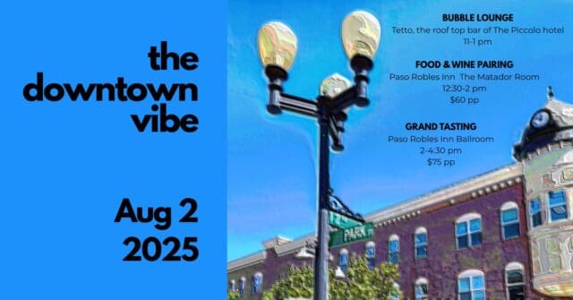 Three fun and educational events will take place over the course of the day including a Bubbles Lounge, a Food & Wine Pairing and a Grand Tasting involving 20+ participating downtown wineries in the historic Paso Robles Inn Ballroom.