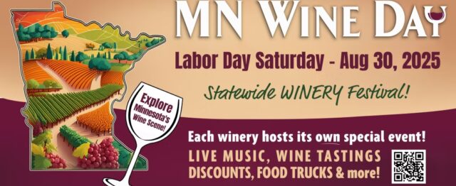 Saturday, August 30, is MN Wine Day. A day to celebrate the amazing Minnesota wine industry. It’s a great day to stop by and support our many family-owned wineries around the state. Each winery will have its own special event, so check out their sites for more information.