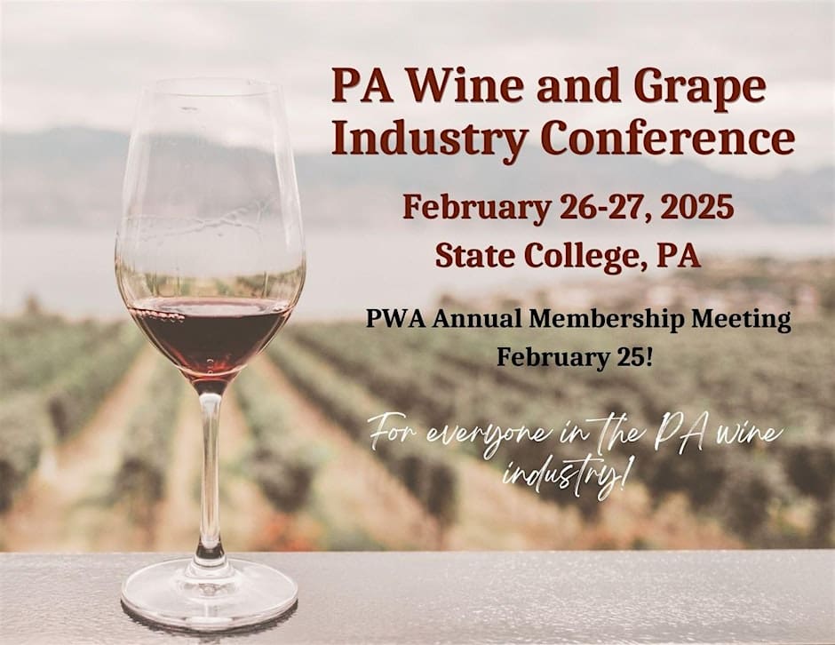 The Pennsylvania Grape and Wine Industry Conference is designed for all stakeholders in PA's grape and wine industry. Whether you are a novice grape grower or winemaker or an established grower and producer, educator, researcher, wine marketer, or business professional, this annual industry conference is designed with you in mind. The event is hosted by the Pennsylvania